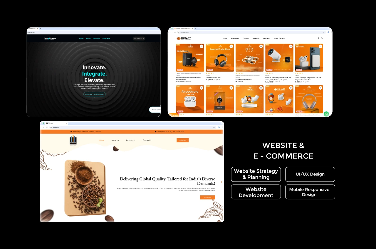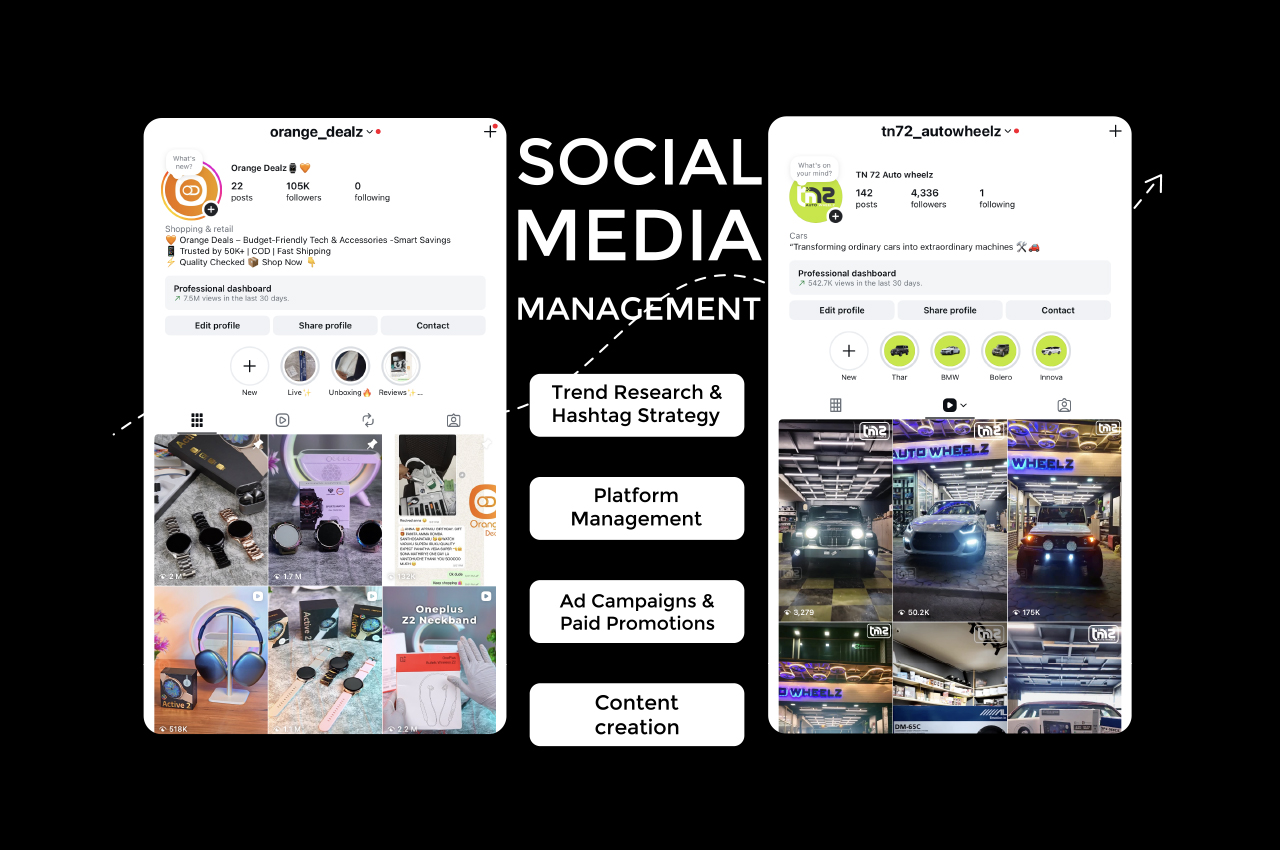 From logo designing, video ads, and product photoshoots to web development, website designing, and social media marketing — we bring everything your business needs under one roof